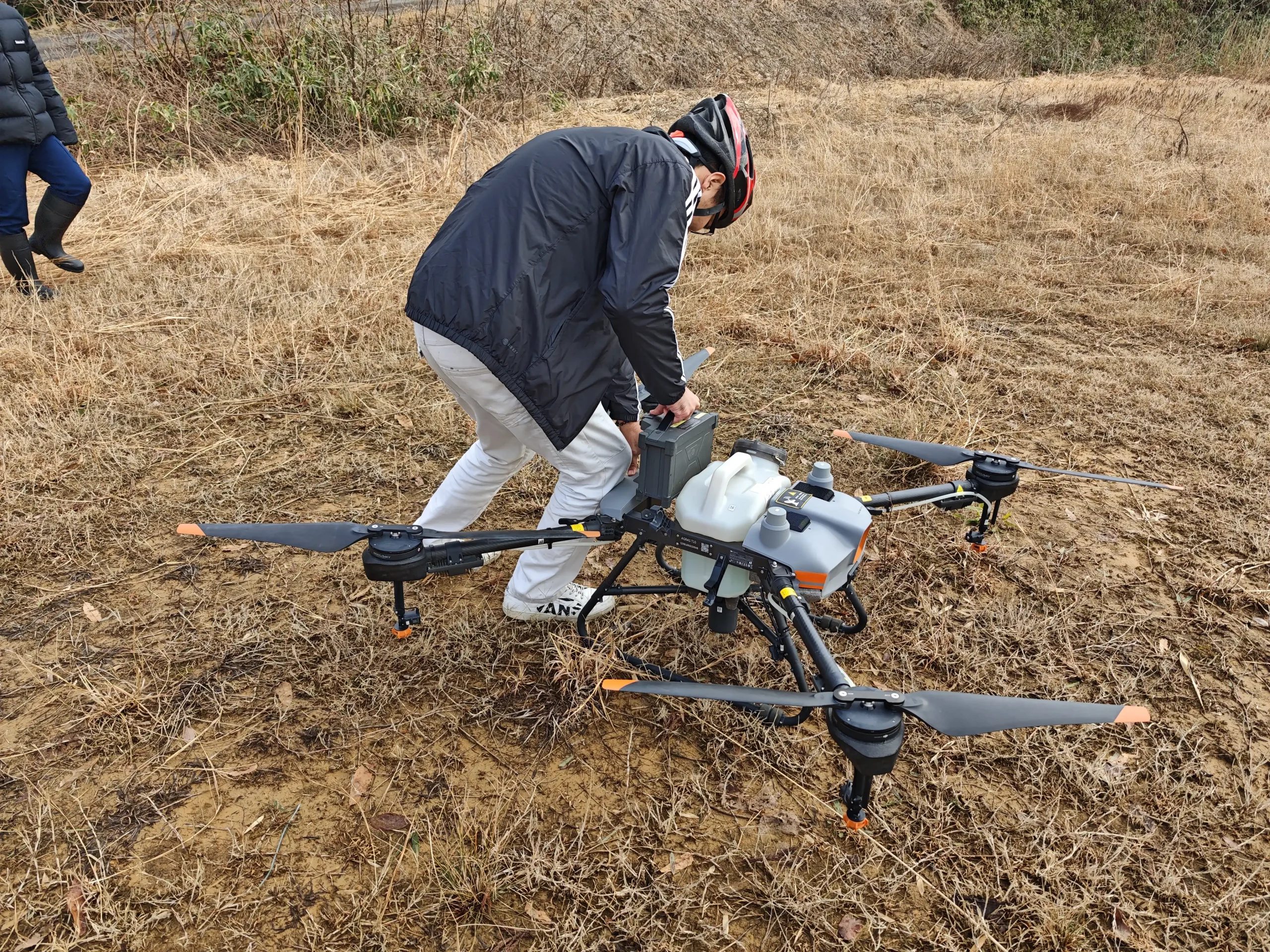3日目の実地講習では、農業用ドローン「DJI Agras T10」を実際に操作しました。